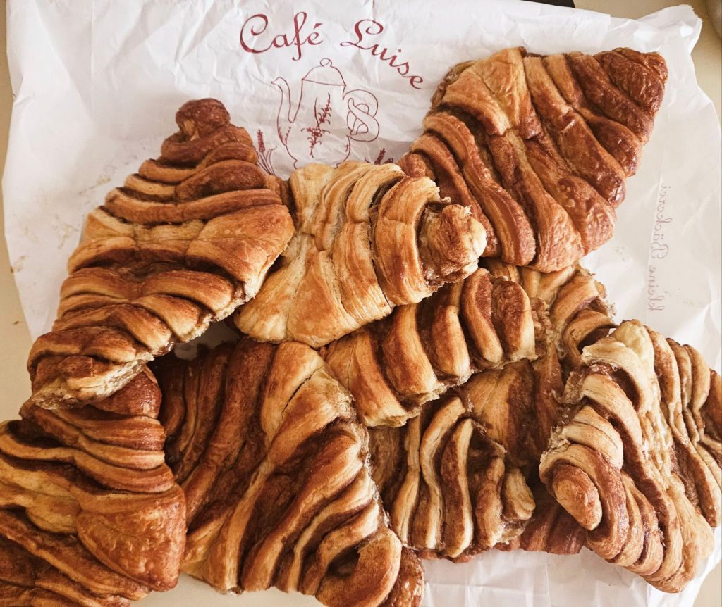 Der Name des Gebäcks, das typisch für Hamburg ist, lässt mich spekulieren, ob es aus der Zeit der Französischen Besatzung ist, die von November 1806 bis Mai 1814 stammt, und vielleicht ein Versuch war ein Croissant zu imitieren, wohl eher kreierte ein Hamburger Bäcker mein morgendliches Wonnestück. Aus der Franzosen Zeit blieben einige schöne Wortkreationen, etwa die Fiesematenten, abgewandelt aus dem französischen „visite ma tante“, das junge Frauen als Vorwand nutzten, wenn sie sich mit einem feschen Franzosen trafen.